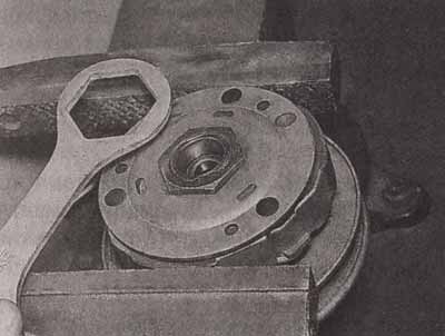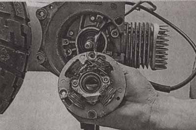 Сцепление так же, как и прочие узлы трансмиссии, после увеличения мощности двигателя нуждается в обязательной перенастройке. Момент срабатывания сцепления, также, как и вариатор — обычно настраивают на значение оборотов, соответствующее максимальному крутящему моменту. Таким образом, обеспечивается наиболее эффективное троганье с места и разгон. Если сцепление будет срабатывать раньше этого момента, двигателю просто не хватит мощности и момента, чтобы стронуть скутер с места, если позже — мы снова получим рывки и провалы в динамике разгона, плюс потерю части рабочего диапазона двигателя, который останется в «холостом» секторе тахометра. Настройка сцепления осуществляется подбором жесткости пружин, стягивающих колодки. Сцепление работает по инерционному принципу: вращаясь, благодаря центробежной силе, колодки расходятся и прижимаются к «колоколу» — ведомому барабану сцепления. Пружины, в свою очередь, противодействуют расхождению колодок, таким образом, изменяя жесткость пружин (заменяя пружины на более жесткие или мягкие) мы можем регулировать момент срабатывания сцепления. Важно помнить, что все пружины должны быть одинаковой жесткости, в противном случае, колодки будут работать с перекосом, изнашиваться неравномерно, их может даже заклинить или наоборот, сцепление будет недовключаться и буксовать на ходу. Процесс настройки сцепления достаточно трудоемкий, так как невозможно теоретически рассчитать оптимальный момент срабатывания, ведь у большинства скутеристов нет динамометрического стенда, который «нарисует» графики мощности и крутящего момента. Так что придется несколько раз разбирать-собирать сцепление, чтобы найти именно те пружины, которые обеспечат наилучшую динамику. Для облегчения этой трудоемкой процедуры существует так называемое регулируемое сцепление, в котором можно при помощи винтов изменять предварительное поджатое пружин, тем самым изменяя их жесткость. Кроме того, такая система позволяет не только единожды настроить сцепление, но и практически полностью исключить отрицательные эффекты, которые вызывает неравная жесткость обычных пружин (которая в той или иной степени практически всегда присутствует). Колодки сцепления тоже иногда заменяются на тюнинговые. Такая замена позволяет сделать момент троганья более резким и быстрым. Разумеется, подобная модернизация не лучшим образом сказывается на комфорте, но является неоспоримым преимуществом с точки зрения улучшения динамики скутера. Кроме того, поскольку колодки сцепления выполняют роль центробежных грузов для самих себя, иногда заменой колодок на аналогичные, но с большей или меньшей массой, удается более точно настроить механизм, особенно, когда не хватает диапазона поджатия пружин регулируемого сцепления, или нет подходящих пружин нужной жесткости для обычного, нерегулируемого сцепления.ЗАДНИЙ РЕДУКТОР