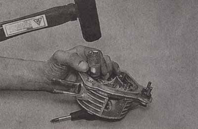 В конструкции скутеров чаше всего применяются шариковые радиальные подшипники. Для подобных типов подшипников применяется единый метод снятия-установки. Старый подшипник обычно выбивают из гнезда при помощи молотка и выколотки (подробнее см. Подшипники переднего колеса — замена). Если гнездо подшипника не сквозное, то подшипник извлекается при помощи двухзахватного или трехзахватного съемника.ВНИМАНИЕ!