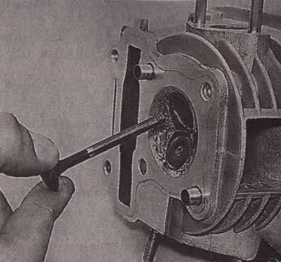 3. Извлекать сальники из гнезд можно разными способами. Поскольку старый сальник всегда отправляется в мусорное ведро, нет смысла пытаться его сберечь. Сальник можно поддеть отверткой или проволочным крючком, выбить при помощи выколотки и молотка, если есть возможность подобраться к нему с обратной стороны. Главное, не повредить плоскости посадочного гнезда сальника, иначе масло (или другая жидкость, которую сальник призван останавливать), будет просачиваться в образовавшиеся полости и вытекать наружу. Такие повреждения устранить очень сложно.