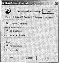 Достаточно вводных слов! Первые четыре главы предназначены для того, чтобы вы начали работать с Firebird - загрузка и инсталляция серверных и клиентских программ, изменение некоторых основных установок сети, конфигурирование нескольких установок, если значения по умолчанию не совсем подходят для вашей среды. И, в заключение, в главе 4 начало работы с сервером и базой данных с использованием основного клиентского инструмента.