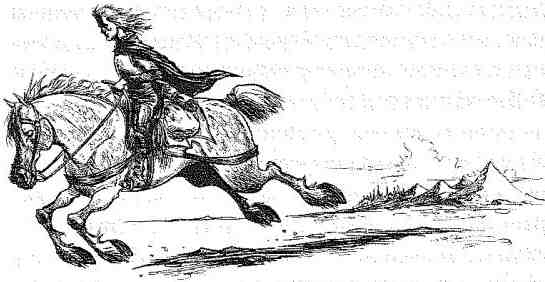 Я вышел из таверны и направился к стойлам. Джед мягко заржал, когда я появился на конюшне. Он радовался не меньше меня, понимая, что мы навсегда уезжаем из Засушливого Края, этих Богом забытых мест. Я отвязал веревку, вскочил в седло и натянул поводья. Оставив позади таверну, мы выехали на главную улицу и поскакали дальше, прочь из этой деревни. Когда мы добрались до перекрестка, наперерез нам метнулась какая-то темная фигура, и Джед в страхе попятился. Я с трудом удержал моего коня, но в конце концов мне удалось его успокоить.