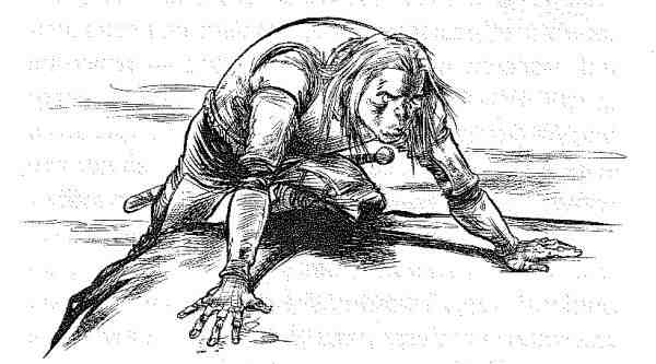 Внезапно я вскочил и нанес ей короткий резкий удар в грудь, утопив лезвие кинжала в сердце мерзкой твари. Ее гнусная физиономия исказилась в гримасе удивления; ведьма покачнулась, издав низкий гортанный хрип. Затем она закашлялась. В глотке у нее забулькало, кровь потекла из уголков ее рта, и людоедка, испустив дух, скатилась с валуна и упала в воду.