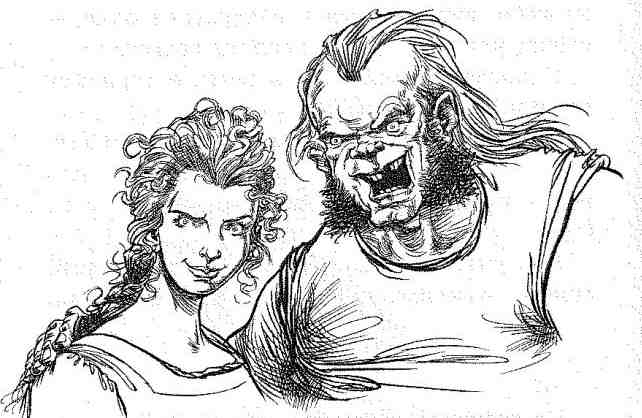 Изучив меня с головы до ног, людоедка нацелилась на мою правую ногу. Она приподняла ее за пятку, а затем когтистой лапищей отодрала поножи, прикрывавшие голень. Затем, спустив мой чулок, она с голодным блеском в глазах вожделенно уставилась на обнаженную плоть, будто перед ней лежал свиной окорок.