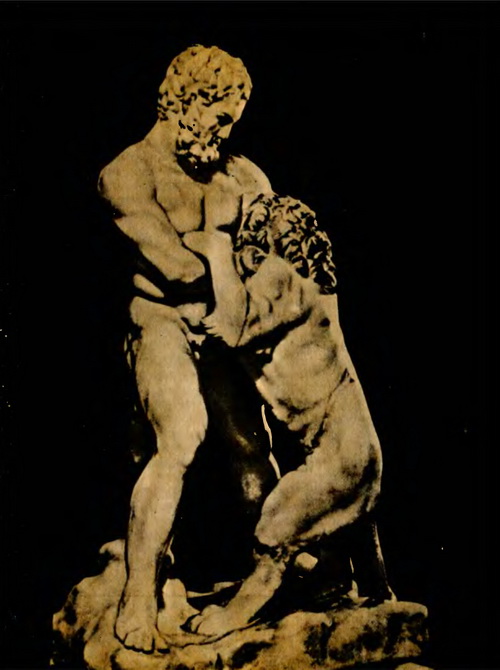 На вимогу царя Еврісфея Геракл знову подався в далеку путь, але тепер уже на захід, туди, де щовечора сідає осяйний Геліос у зелені хвилі величезної ріки Океану. Ідучи на захід, герой довго блукав різними землями і врешті опинився у великій країні Лівії. Володарював тут нездоланний велетень Антей, син бога моря Посейдона і Геї, богині землі. Геракл уже чув про Антея, чув про його надзвичайну силу і про те, що він негостинний і лихий до чужинців. Коли в його володіння заходив якийсь мандрівник, Антей викликав його на двобій, і ніхто не мав сили здолати господаря. Та Геракла це не лякало. І от зійшлися двоє велетнів — Антей і Геракл. Обидва не поступалися один одному ні зростом, ані шириною рамен, ані пружністю м’язів. Прибулець тримав у руці свою улюблену палицю, а господар вирвав із корінням сосну і став вимахувати нею так, що аж вітер завихорився круг нього. — Ану, підходь ближче, коли вже ти насмілився ступити на мою землю, — заволав Антей. — Хай я гляну, хто ти такий. Завжди від тих слів чужинці сахались, але Геракл наблизився і спокійно сказав: — Я — Геракл, а ти, певне, Антей, той, що ніколи не дотримує закону гостинності? Коли так, то я навчу тебе шанувати цей Зевсів закон. На відповідь Антей тільки зареготав і, піднявши обома руками сосну, метнувся до Геракла, цілячись йому просто в голову. Але герой змахнув своєю палицею і одним страшним ударом розтрощив ту сосну на тріски. З досади Антей аж затряс кулаками, схожими на дві каменюки. А справедливий Геракл відкинув убік свою палицю й крикнув: — Нумо битися голіруч! Довго, вперто змагалися велетні. Геракл не поспішав, прагнучи знесилити свого супротивника. Ось той аж гримнувся об землю, але, на превеликий Гераклів подив, не тільки не забився, а наче набрався нової снаги і знову кинувся на супротивника. Герой збив його вдруге і втретє, та Антей щоразу ставав тільки дужчий. Тоді здогадався Геракл, що Антеєві додає сили його рідна мати — Земля. Від кожного дотику до неї він набирався нової сили і ставав ще нездоланніший. Раз у раз Антей сам падав на землю, ніби дратуючи Геракла, однак той уже знав, що робити. Прихитрившись, він схопив Антея за поперек і дужими руками підняв його догори. Дарма той випручувався і силкувався хоч ногою торкнутися землі, дарма гатив навмання своїми каменюками-кулаками, — його удари дедалі слабшали, потім руки кволо обвисли і подих став уриватись. Але Геракл усе тримав Антея високо над землею, аж поки той геть утратив силу й життя. Довго ще блукав лівійським узбережжям Геракл, шукаючи місця, де море вужчало б настільки, що можна було б переплисти на той берег. Та хоч скільки вдивлявся він у блакитно-зелену далечінь, ані смужечки землі не виднілося. Широке море брижилося й мерехтіло сонячними блисками, зливаючись на обрії з небесною блакиттю. Проте герой уперто йшов узбережжям вперед. Від старих людей він чував, що море вужчає там, де щовечора ховається сонце у глибінь Океану, тож ішов усе далі й далі на захід. З безхмарної високості нестерпно палило сонце, на пустельній землі давно вже не траплялося ні джерела, ні ручая. І Геракл врешті став. Обдивившись уважно довкола, він вибрав найнижчу місцинку, підняв обома руками здоровенну палицю і чимдуж ударив нею об землю. Ту ж мить блискучим водограєм бризнув угору прозорий життєдайний струмінь, дзвінко забило чисте джерело, і 
