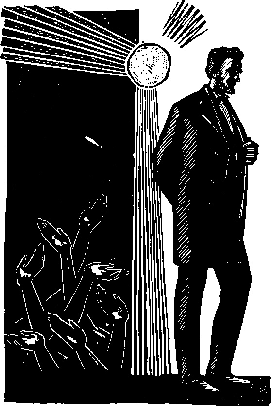 Линкольну исполнился 51 год. Рассказы о нем, о его манерах и поступках уже становились достоянием простых людей и их детей. Этот высокий и костистый человек с характерной сутуловатостью, с легкой походкой, такой печальный, чудаковатый и смешной, казался существом из иллюстрированной книжки для детей, этакий странный друг или дружественный странник. Одежду он не носил — она просто висела на нем, как на раме для сушки. Люди говорили, что Линкольн — огромный скелет, обтянутый кожей, которая, в свою очередь, прикрыта одеждой. Его высокая, как печная труба, шляпа, казалось, тихонько насвистывала: «Я вовсе не цилиндр; я чердачок, куда он прячет свои мыслишки, записанные на бумажонках». Подкладка в шляпе частично состояла из имитации стаиновой бумаги, на которой виднелась карандашная подпись: «А. Линкольн, Спрингфилд, Илл.». Это на тот случай, если какой-нибудь рассеянный джентльмен по ошибке ее наденет, — чтобы знать, кому вернуть. Был у него и зонтик, выцветший и потертый в постоянных странствиях под щедрыми дождями, но и на нем было выстрочено: «Авраам Линкольн». В Спрингфилде, да и в других местах, с прошлым Линкольна, с его рождением и происхождением связывали что-то необычное, таинственное. Регистрацию брачного удостоверения его родителей не нашли. Шептались о том, что он «низкого» происхождения, настолько туманного и странного, что его политические друзья рады были бы выяснить обстоятельства и добиться необходимой респектабельности. Брачный контракт когда-то переслали в новое судебное здание графства, и никто не удосужился произвести там розыски. В тот период, когда происходили горячие дебаты, однажды на улице мальчишка крикнул: «Вот идет старик Линкольн!» Это он услышал и сказал своему приятелю: «Когда мне только минуло тридцать, они уже так кричали». Соседский мальчик, Фред Дюбуа, собрал компанию мальчишек; с помощью веревочки они сбили цилиндр с головы Линкольна. «Из шляпы выпали письма и бумажки, — рассказывал потом Дюбуа, — они разлетелись по пешеходной дорожке. Линкольн наклонился, чтобы их поднять, а мы, мальчишки, взгромоздились на него». Будучи молодым человеком, он играл с ребятами в камешки. В пожилом возрасте он все еще запускал волчки со своими сыновьями. Когда однажды Тед задержался с молоком, Линкольн разыскал сынишку, взял у него ведро с молоком, посадил мальчика на плечи, и так они вернулись домой. В другой раз он нашел пропавшего Теда и принес домой, держа его над землей на вытянутой руке; мальчик изворачивался, стараясь попасть отцу в лицо ногой, а Линкольн довольно посмеивался. Как-то он волок орущих Вилли и Теда. Сосед спросил его: — Мистер Линкольн, в чем дело? Последовал ответ: — В том же, что и со всеми в нашем мире. У меня только три ореха, а каждый из моих сыновей хочет получить обязательно два. Он любил рассказывать забавные истории и анекдоты. Одна из его историй была о воздухоплавателе, который в Новом Орлеане поднялся на воздушном шаре. Группа негров, собиравших хлопок, увидела человека, спускавшегося с небес в синем шелковом одеянии, унизанном серебристыми звездочками, и с золотыми туфлями на ногах. Все убежали. Все, кроме одного старика, пораженного ревматизмом и не сумевшего скрыться. Он подождал, пока аэронавт коснулся земли, и проковылял к нему. «Как поживаете, масса Иисус? — пробормотал он. — Что поделыва
