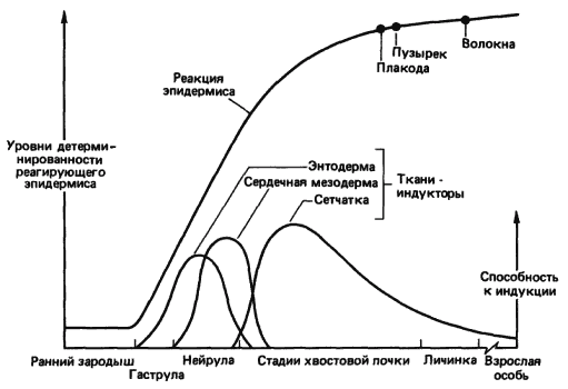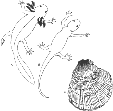 Если межвидовое α = 1, то в таком случае взрослые особи более крупных видов представляют собой увеличенные варианты своих более мелких родичей (или предков). Гулд (Gould) высказал мнение, что это может произойти в процессе эволюции, если более крупный вид-потомок сохраняет значение α своих мелких предков, но аллометрический рост рассматриваемой структуры начинается у него из более крупного зачатка, т.е. при более высоком значении b. Тогда, для того чтобы произошло изменение величины структуры, необходим либо сдвиг начала роста зачатка на более ранние сроки (акцелерация), либо его задержка. Это создает альтернативную возможность увеличения размеров в процессе эволюции, не требующую изменения законов роста. Если у организмов сохраняется кривая онтогенетического роста предков, а аллометрия роста сильно отличается от α = 1, то пропорции тела могут резко изменяться с увеличением размеров. Сохраняя аллометрию, но начиная рост с других размеров зачатка, организм может избежать больших изменений в соотношении размеров разных частей. В настоящее время все еще нет возможности полностью объяснить механизмы регуляторных процессов, лежащих в основе изометрического или аллометрического роста, однако уже начинают выявляться некоторые интересные аспекты этих процессов. Как указывает Госс (Goss), для родственных между собой организмов, сильно различающихся по общим размерам, существуют две возможности: до тех пор пока основной план их организации остается сходным, должно происходить изменение либо размеров, либо числа составных частей. По общему правилу мелкие функциональные единицы - клетки какого-либо органа или фасетки сложного глаза-изменяются в числе, тогда как крупные функциональные единицы - внутренние органы, конечности или глаза - изменяются по размеру. В известных пределах увеличение размеров приводит к повышению эффективности органов. Примером такого рода служит головной мозг: более крупные общие размеры создают возможность для большего числа нейронов и большего числа связей между ними, что приводит к усилению функционального потенциала мозга. Из этого вытекает важное следствие, состоящее в том, что в период роста соотношение размеров разных частей тела в значительной степени зависит от относительных скоростей клеточного деления. Данные о существовании факторов, регулирующих рост, появились еще в 20-е и 30-е годы; обзор ряда проведенных в этот период изящных экспериментов с пересадками органов сделал Твитти (Twitty, 1940). Так, например, при пересадках глаз от более старых аксолотлей (Ambystoma) молодым наблюдалась задержка роста этих крупных глаз, а при пересадке мелких глаз от более молодых особей более старым рост их ускорялся, так что в конечном счете величина глаз вполне соответствовала размерам их хозяина. Существует, очевидно, какая-то система, действующая по принципу обратной связи и состоящая из циркулирующих в организме регуляторных веществ двух типов - стимулирующих клеточное деление в определенных тканях и подавляющих его. Одним из таких хорошо известных тканеспецифичных регуляторных веществ стимуляторного типа служит эритропоэтин, вырабатываемый в почках в ответ на потери крови и стимулирующий образование эритроцитов. Существуют также позитивные регуляторы, участвующие в развитии морфологических признаков. Андр