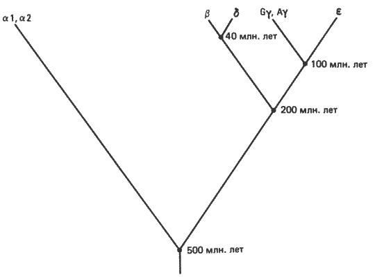 | β-Глобины | 2-7 | 2-7 близких генов | '' '' | |