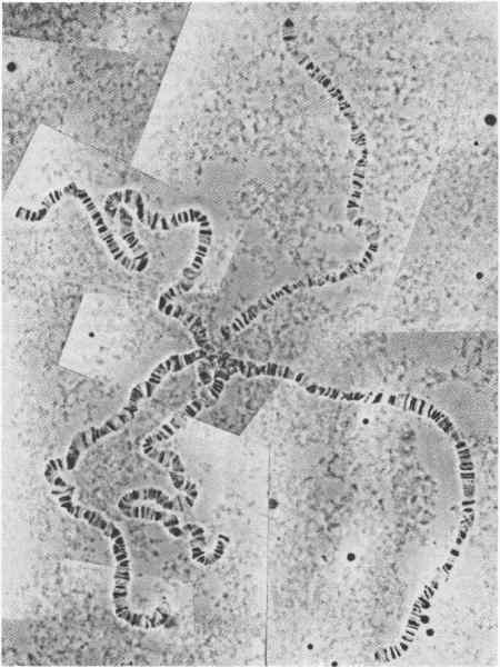 Можно возразить, что наш «средний» ген с его кодирующей последовательностью из 1500 нуклеотидных пар - недооценка, далекая от реальности. И в самом деле, существует несколько огромных генов. Например, Дейнхолт (Daneholt) и его сотрудники, а также Лемб и Дейнхолт (Lamb, Daneholt) изучали гигантскую РНК, синтезируемую в слюнных железах двукрылого Chironomus tentans. Эта РНК выходит из ядер в цитоплазму и, по-видимому, транслируется с образованием очень большой полипептидной цепи (молекулярная масса 850000). Она транскрибируется с участка ДНК, длина которого соответствует примерно 37 000 пар нуклеотидов. Однако у преобладающего большинства клеточных белков молекула в среднем состоит из 500 аминокислот, а цепи их мРНК-из примерно 2000 нуклеотидов. Избыточные 500 нуклеотидов слагаются из нетранслируемых начальных и хвостовых последовательностей на 5'-и 3'-концах мРНК. Но все же такие данные, как данные Шуи о длине транскрипционных единиц у дрозофилы, показывают, что подавляющее большинство транскриптов, из которых в результате процессинга получаются мРНК средних размеров, поставляются участками ДНК длиной в 10000-20000 нуклеотидных пар. Очевидно, кодирующая последовательность нетождественна всему гену в целом.