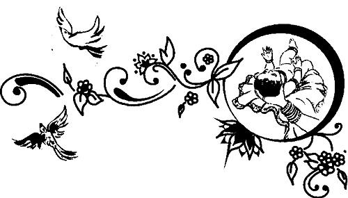 | Маха-мантра — великая песнь освобождения: Харе Кришна Харе Кришна Кришна Кришна Харе Харе Харе Рама Харе Рама Рама Рама Харе Харе. |