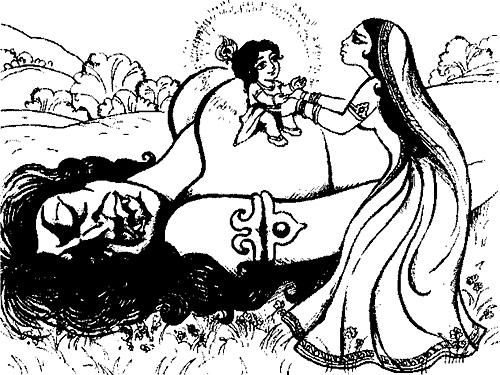 паритранайа садхунам винашайа ча душкритам дхарма-самстхапанартхайа самбхавами йуге йуге «Чтобы освободить праведников и уничтожить злодеев, а также восстановить устои религии, Я прихожу сюда из века в век»....Однажды Мать Земля, попираемая тысячами воинов, во главе которых стояли демоничные и жестокие военачальники, опьяненные своей гордыней, приняла облик коровы и в слезах от горя, жалея своих детей — обычных простых людей, которые жили, как в аду, обратилась к Господу Брахме. Господь Брахма позвал других деватов, и все вместе они пошли к берегу Молочного океана. Там они, чтобы призвать милость Господа, стали возносить молитвы Пуруша-шукта. В ответ с небес раздался голос Господа, который слышал только Брахма. И Господь Брахма передал то, что услышал от Господа, всем полубогам. Он сказал: «Господь знал обо всех ваших бедах еще до того, как вы рассказали Ему о них. Однако Он услышал ваши молитвы и очень скоро воплотится в этом мире и исполнит все ваши желания. Пока же по Его наставлению вы все должны проявить часть себя, став сыном или внуком в роду царей Яду, чтобы вместе со своими женами помогать Господу в Его лилах». Передав это послание, Господь Брахма вернулся в свою обитель Сатьялоку. Итак, в великих родах Яду и Вришни постепенно стали появляться слуги Господа. Жил великий царь по имени Хрид, у него был сын, который тоже стал царем. Его звали Девамидха. У Махараджи Девамидхи были две жены. Одна была из рода кшатриев, а другая из рода вайшей. Его жена из рода кшатриев родила сына по имени Шурасена, а жена-вайшья родила сына по имени Парджанья. Шурасена поселился в округе Матхура и стал великим царем этой страны. А Парджанья, который был океаном всей добродетели, стал защищать коров и поселился в вечно славном Махаване, который по-другому называется Гокулой. У Шурасены было десять сыновей и пять дочерей. Самым знаменитым его сыном был Васудева. У Парджаньи родились пять сыновей: Упананда, Абхинанда, Нанда, Сананда и Нандана. От царя Ахуки произошли братья Уграсена и Девака. Махараджа Девака имел несколько дочерей и среди них — Деваки. Ее он отдал в жены Васудеве. Их свадьба стала знаменательным событием. В конце этого большого праздника Деваки и Васудева собрались ехать домой. Камса, сын Уграсены и двоюродный брат Деваки, желая проявить любовь к сестре, принял на себя смиренную роль колесничего в свадебном кортеже. Но какова природа любви во взаимоотношениях материалистов? Все в них обусловлено и направлено на исполнение собственных планов и желаний. В этом мире мы видим, что самые лучшие друзья могут стать самыми заклятыми врагами. Любящие могут проявить самую глубокую ненависть друг к другу. Все это — последствия эгоистичных склонностей сердца. Полицейские в Америке бестрепетно преследуют и задерживают членов мафии, убийц и грабителей банков, но боятся выезжать по вызовам в дома, где конфликтуют возлюбленные, потому что никто не знает, чего можно ожидать там, где страсть оборачивается гневом. На Западе 70% браков распадается в первые три года, и большая часть бывших мужей и жен остаются врагами на всю оставшуюся жизнь. Они способны так мучить друг друга, как не может никто иной. Мужчина и женщина смотрят в глаза друг другу и видят там звезды, луну и океан блаженства. Через несколько лет в тех же самых глазах они обнаруживают пылающий