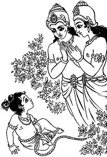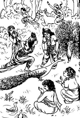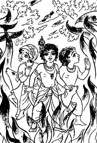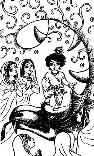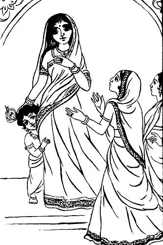 — Нет, нет, не снимай их с Гопала, — протестовали гопи. — Эти дети не обычные. Похоже, что Они освещают комнаты одним Своим присутствием.