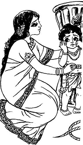 Но с этим пришло еще больше тревог, потому что за Ними невозможно было уследить и пришел черед воровских подвигов Кришны. Гопи постоянно приходили жаловаться Яшоде: