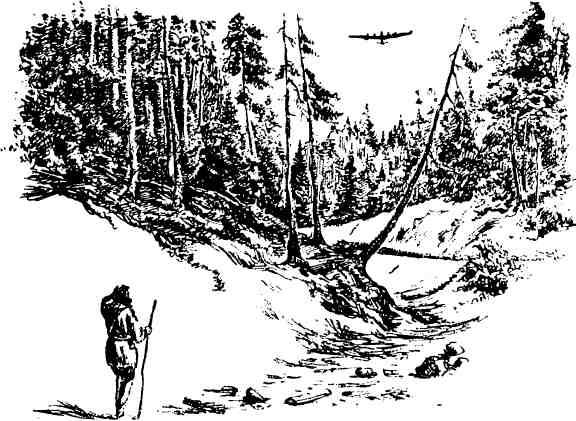 Проснувшись утром, обдумываю: стоит ли ждать помощи с самолета на этой мари, или продолжать двигаться вперед? Шоколада осталось мало, на болоте запаса пищи не пополнишь, а ведь вчерашний самолет ничем не показал, что он меня заметил. Может быть, летчик видел только дым, а меня ему не удалось различить. Нет, правильнее будет двигаться к снежной горе. Время осеннее, погода вот-вот начнет портиться, пойдут ливни. Что я тогда стану делать одна на болоте? Снова двигаюсь в путь. Через час достигаю сопок. День уходит на перевал первой гряды и на переход через двухкилометровую марь. Это та самая марь, вдоль которой я уже брела двое суток. Выхожу к знакомой гряде сопок: вблизи нее я приземлилась с парашютом. Вдруг вижу в воздухе два самолета. Они летают в разных направлениях, явно разыскивая что-то внизу. Из мари я вышла западнее бурелома, по которому путешествовала уже однажды. Попала как раз на то место, откуда несколько дней назад до меня доносился рев медведей. В том, что именно здесь водятся медведи, я не сомневаюсь: все стволы деревьев в этом месте свеже обглоданы. Вскоре довольно отчетливо, хотя и далеко, послышался рев. Прошла немного по лесу, рев стал слышнее. К реву прибавился треск разламываемых ветвей. Устала. Неожиданно попадается целый куст рябины. Набираю рябины, сколько могу: в платок, в карманы. Наедаюсь вдосталь, рябина замечательно освежает. Хорошее место. Решаю здесь же заночевать. Но надо хоть что-нибудь предпринять против мишек. Заснешь, а он, огромный и черный, подойдет и полюбопытствует — что за личность забралась в его владения? Застегиваю шубу, с головой ушла в воротник, свернулась в комок. Однако заснуть не могу. В тридцати метрах протекает маленькая быстрая речка. Всю ночь из-за речки душераздирающе мяукают рыси. Час от часу не легче. Охотник я неважный, и хуже всего то, что в обойме моего «Вальтера» осталось всего-навсего четыре патрона. Остальные расстреляла в первые дни, когда надеялась, что мои выстрелы услышат. Рыси продолжают мяукать громко и противно, как дерущиеся кошки. Но, к счастью, они, очевидно, никак не могут добраться ко мне через речку. Ночью несколько раз просыпаюсь. Прямо надо мной красивое дерево, и сквозь его сучья видно яркое, звездное небо. Я с удовольствием думаю о том, что погода все еще не портится. Очевидно, завтра дождя не будет. Несколько раз переворачиваюсь с бока на бок. Отлежала ногу, правая начинает немного ныть. Каждый раз, когда открываю глаза, оглядываюсь по сторонам. Я начинаю рассматривать звезды. Нахожу созвездие Малой Медведицы, Полярную звезду. Незаметно засыпаю.4 октября.