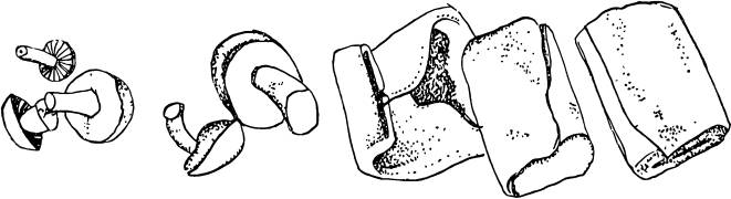 – является родственником сморчка. Растет он в такое же время и в таких же местах, где и сморчок, но внешне заметно от него отличается. Однако бывают случаи, когда эти грибы смешивают. Строчки напоминают смятый клочок бархата светло-бурого или темно-бурого цвета с глубокими морщинами, складками, наброшенный на неправильной формы белую совсем коротенькую полую ножку. Уже отмечалось, что в строчках содержится ядовитая гельвелловая кислота. Чтобы не отравиться этими грибами, их обязательно следует предварительно отваривать в течение 10-15 минут. При варке гельвелловая кислота переходит в воду, поэтому отвар надо выливать. С целью большей предосторожности рекомендуется строчки отварить дважды и промыть. Обработанные таким образом строчки безвредны, их можно употреблять в пищу. Они очень вкусны жареные и тушеные. Можно их и сушить (при сушке яд нейтрализуется, но употреблять сушеные строчки можно не раньше чем через 3-4 недели после сушки). Сушеные, они хороши для приготовления соусов.Трюфели