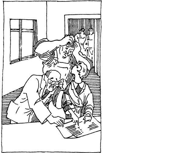 В зале у пылающего камина собрались домашние, тревожно прислушивающиеся к мерному уханью, которое доносилось из лаборатории.