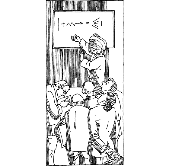 В каждом более или менее солидном научном учреждении, какое с целью ознакомления либо с намерением поднабраться опыта посещают различные делегации, обязательно имеется хотя бы один научный сотрудник, которому эта в общем-то нудная обязанность водить группы, рассказывая всякий раз одно и то же, особенно по душе. Подозреваю, что каждый из них — по каким-то причинам несостоявшийся актер, и не удивлюсь, если узнаю, что такой гид перед тем как подать документы в химико-технологический институт, провалился на экзаменах в школу-студию МХАТа. Вот и здесь, в институте, занимающемся проблемами радиационной химии, нас водит по лабораториям приятный молодой человек с манерами индусского факира достаточно высокой квалификации. Начинает он с того, что, подойдя к висящей на столе доске, изображает нечто непонятное: