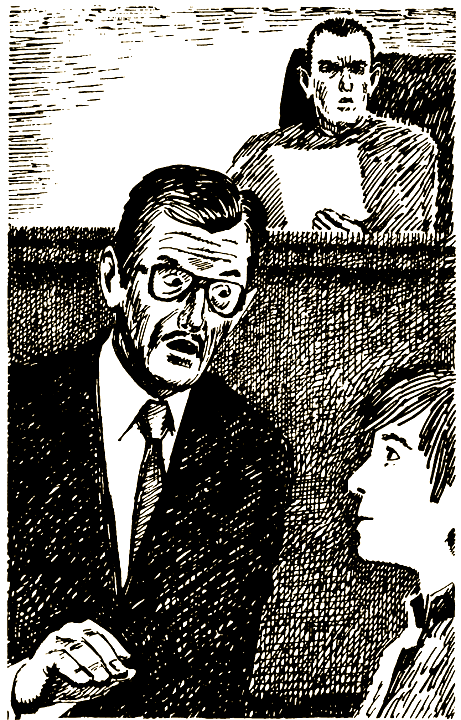 — Я протестую! — восклицает мистер Крамер. Судья собирается что-то сказать, но мистер Стаффорд поспешно соглашается: — Снимаю свой вопрос! Больше вопросов не имею. Судья говорит, что ты свободен. Вдруг в зале поднимается шум. Бум! Бум! Бум! — ударяет судья молоточком по столу. — Требую тишины! Люди притихли. Ты занимаешь свое место. Начинаются выступления адвокатов. Мистер Стаффорд настойчиво повторяет, что Бонза — колдун и от него одни неприятности. Свою речь он заканчивает фразой: — Великий Бонза нарушает покой не только соседей, но и всех жителей Лейквилла!Смотри следующую страницу.(обратно)