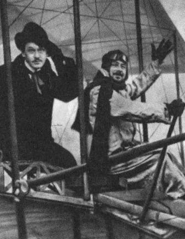 Шуточная фотография «На аэроплане». Пилот — Л. А. Сулержицкий, пассажир — В. Е. Егоров. Париж, 1911