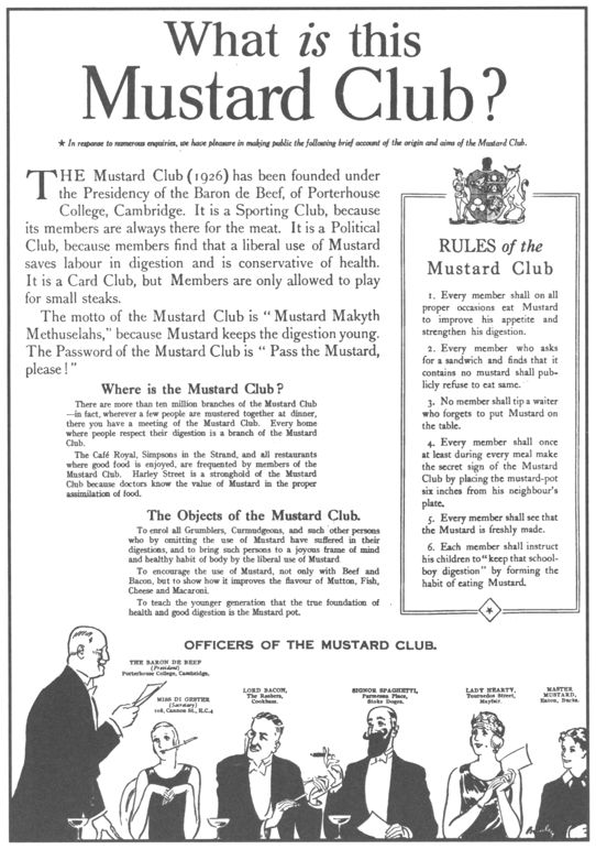 Современники вспоминают, как на одно из собраний клуба, проходивших в общем обеденном зале, Дороти Сэйерс явилась в костюме для игры в регби, а на груди у нее красовались огромные часы. Во время обеда обсуждали известного дирижера; мисс Сэйерс объявила, что он дирижирует, словно пьяная мельница, — и тут же, вскочив, принялась размахивать руками, чтобы наглядно продемонстрировать, как именно. Тяжелые часы прыгали на ее обширной груди. Зрелище это совершенно парализовало посетителей ресторана. Детективный клуб ни в коей мере не ставил себе целью стать профсоюзом. Напротив, это был узкий круг избранных, компания друзей и единомышленников. В начале своего существования клуб объединял около трех десятков писателей, к началу Второй мировой войны в него вступили еще человек десять.