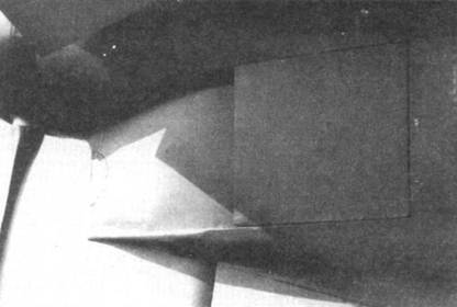Правое боковое выходное отверстие воздуховода заднего двигателя на Do 335А-02 с регулирующей крышкой.