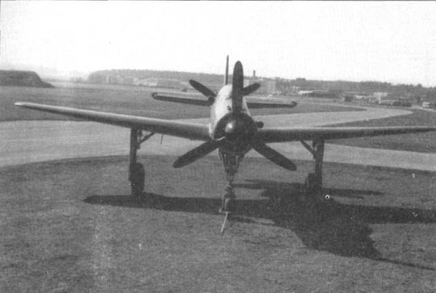 Любопытный снимок Do 335А-02 сзади. С заднего винта снят кок, хорошо видна ступица винта. Обратите внимание на полностью раскрытые выпускные отверстия боковых воздуховодов.