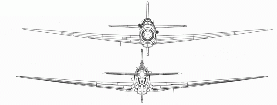 Do 335M13, прототип модификации В-2. На самолете опробованы новые оконцовки крыльев. Вид сбоку и сверху.