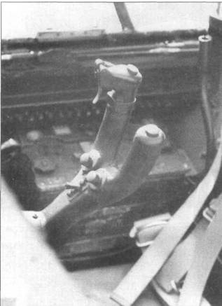 53 Включатель аварийной системы выпуска шасси. 54. Левая педаль. 55. Регулируемая лампочка подсветки кабины. 56. Кресло пилота. 57. Маховик системы регулировки левой педали. 58. Посадочный включатель закрылков. 59. Включатель выпуска шасси. 60. Включатель аварийной системы питания основных бортовых систем. 61. Маховик регулятори триммера рули высоты. 62. Выключатели системы зажигании двигателей. 63. Гпавный вентиль кислородного оборудования. 64. Указатель триммера. 65. Маховик регулятора триммера элерона. 66. Таблица деривации главного компаса. 67. Таблица деривации вспомогательного компаса. 68. Маховик регулятора триммера руля направления. 69. Блокировка ручек газа. 70. Ручка газа переднего двигателя. 71. Вентиль системы пожаротушения заднего двигателя. 72. Вентиль системы пожаротушения переднего двигателя. 73. Подвижная крышка панели. 74. Предохранитель топливного вентиля. 75. Ручка газа заднего двигателя. 76. Переключатели шага винта. 77. Вспомогательный компас с подсветкой. 78. Левая вспомогательная панель. 79. Переключатели винтов. 80. Включатель системы сброса нижнего киля. 81. Регулятор подсветки компаса. 82. Главный выключатель электросети. 83. Пятипозиционный указатель положения шасси. 84. УФ-лампочка ночной подсветки кабины. 85. Рычаг замка фонаря. 86. Выключатель вспомогательных навигационных огней. 87. Включатель посадочных огней. 88. Включатель в ‹ ь огней. 89. Включатель SZKK. 90. Включатель подсветки приборной доски. 91. Включатель гирокомпаса. 92. Регулятор яркости подсветки кабины. 93. Захват ручки. 94. Альтиметр. 95. Указатель забортной температуры. 96. Радиоальтиметр. 97. Репитер гирокомпаса. 98. Кнопка бомбосброса. 99. Левая панель приборной доски. 100. Хронометр. 101. Спидометр. 102. Главная приборная доска. 103. Манометр кислородного оборудования. 104. Рама лобового стекла. 105. Искусственный горизонт. 106. Указатель расхода кислорода.