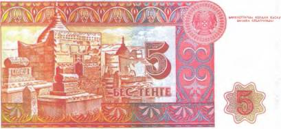 Рис. 24. Казахстан — 5 тенге 1993 г. (124×62 мм)
