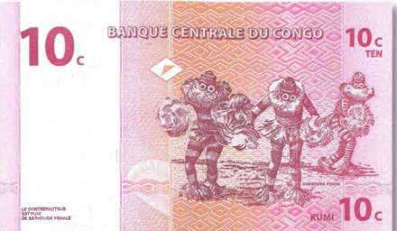 Рис. 39. Демократическая Республика Конго — 10 сантимов 1997 г. (130×75 мм)