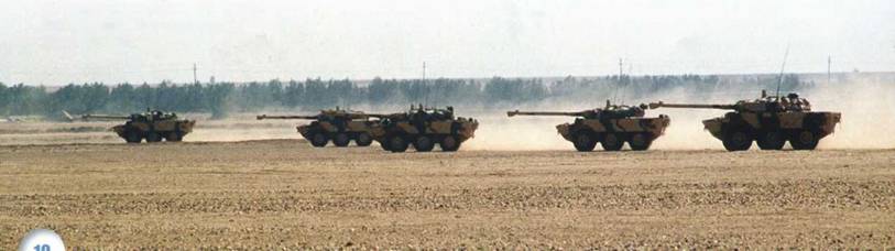 Французские разведывательные машины AMX-10RC следуют через пустыню. Январь 1991 года.