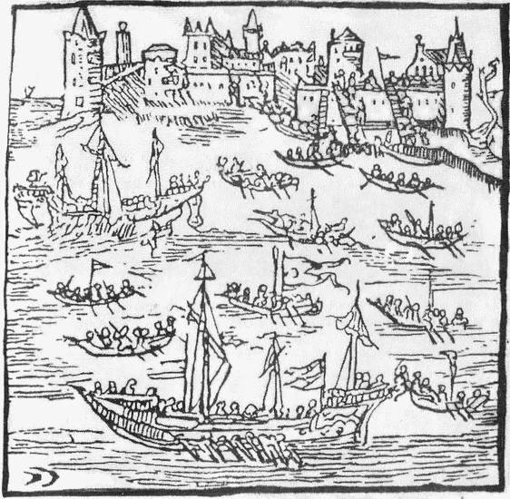 Рис. 14. Казацкая чайка (рисунок Боплана). (По М. Грушевскому: «Iлюстрована iсторiя Украïни». — К.: «Наук. думка», 1992. — С.236).