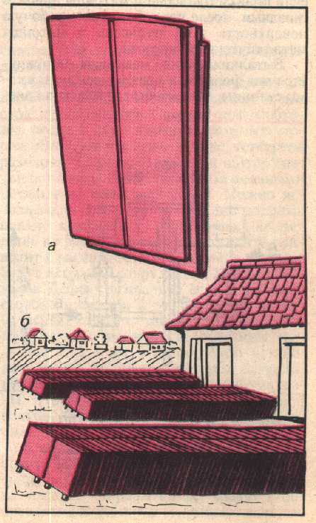 Рис. 5. Готовая черепица: а — из цемента марки 400 и песка средней крупности; б — складирование перед отправкой черепицы