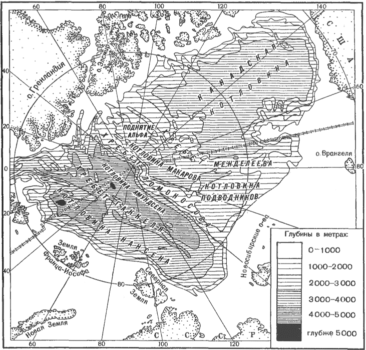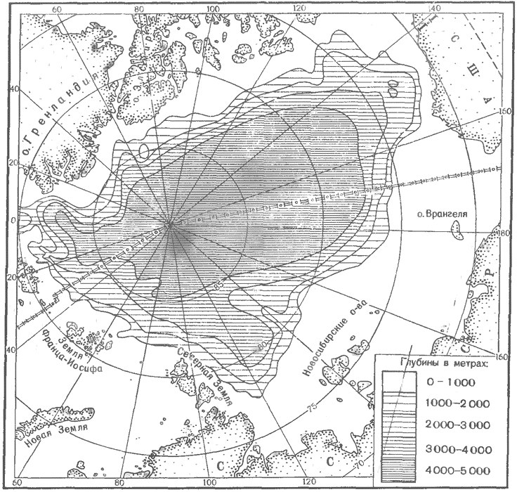 Как только закончилась Великая Отечественная война, советские исследования Центральной Арктики развернулись в самом широком масштабе. Последовательно проводилась новая система работ: в заранее определенных пунктах на лед со специально приспособленных самолетов, пилотируемых И. Черевичным и И. Котовым, весной, на сравнительно короткое время — от нескольких часов до двух-трех суток — высаживались небольшие группы исследователей разных специальностей. В 1948–1949 гг. 20 таких «прыгающих отрядов», руководимых М.М. Сомовым, выполнили несколько сот определений глубин в ряде участков Центральной Арктики, ранее никем не посещавшихся. Промеры, произведенные гидрологами Яковом Яковлевичем Гаккелем (конец апреля 1948 г.) и А.Ф. Трешниковым (тот же период следующего года) дали неожиданные результаты — 1290 и 1005 м. Основываясь на этом открытии, Я. Гаккель предсказал существование подводной горной системы, позднее названной хребтом Ломоносова, и показал ее на карте от Новосибирских о-вов до о. Элсмир. Весной того же 1949 г. группой магнитолога Михаила Емельяновича Острекина на меридиане о. Врангеля обнаружена глубина 1234 м — первое указание на существование еще одного поднятия, впоследствии получившего имя Д.И. Менделеева.