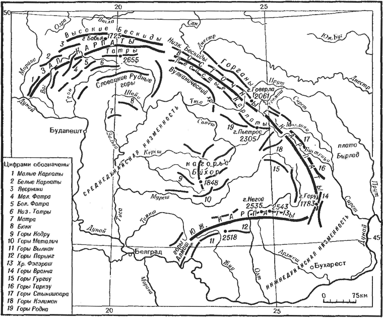 Орографическая схема Карпат