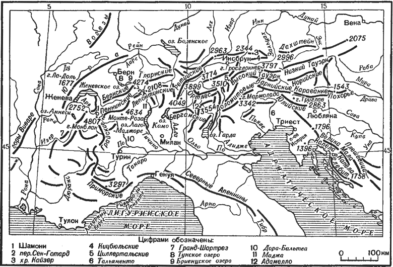 Орографическая схема Альп