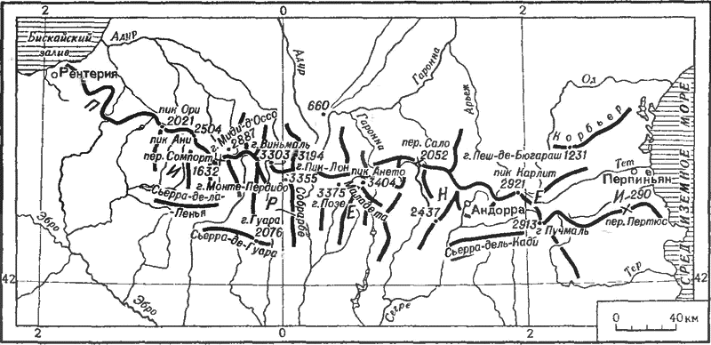 Орографическая схема Пиренеев