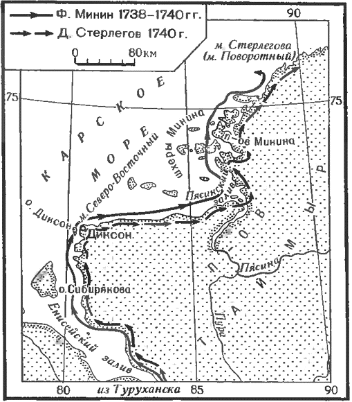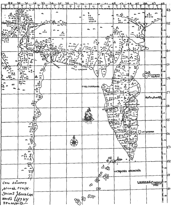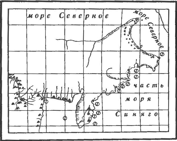 В начале 40-х гг. XVIII в. Адмиралтейств-коллегия решила оставить на зимовку у незамерзающего Мурманского берега военные корабли. Для этого необходимо было исследовать участок побережья, выбрать удобную для зимовки гавань и построить там жилища. Летом 1741 г. к устью Колы был послан лейтенант Василий Винков, заснявший о. Кильдин и короткий участок матерого берега к западу от него до вершины Кольского залива. «Это была первая и притом точная работа русских на Лапландском берегу». В то же лето флота-мастер (старший штурман) Евтихий Бестужев описал все западное побережье п-ова Канин. Его журналы до нас не дошли; на составленных им картах довольно подробно обозначены все речки и изгибы берега, но отметок глубин на море нет. Благодаря его работе впервые узнали об истинном положении Ка нинского берега, а выполненное Е. Бестужевым исследование рек Чижи и Чеши до 1850 г. оставалось единственным. Вторая опись Белого моря, более ценная с гидрографической точки зрения, совершена штурманом Беляевым в 1756–1757 гг. на одномачтовом боте. Он описал о. Моржовец, оба берега Мезенской губы и весь Зимний берег (более 500 км). Он впервые выполнил также промеры глубин между устьями Мезени и Двины. «Работы Беляева отличаются точностью и подробностью, удивительными по средствам, которые он имел для исполнения этого дела… Быть может, этот деятельный труженик скончался вскоре по возвращении… так как карта вышла под именем его помощника Толмачева, хотя большую часть описи сделал сам Беляев». В 1769 г. Михаил Степанович Немтинов на боте засиял все побережье Онежского п-ова от устья Двины до устья Онеги. «…Острова Онежских шхер, виденные им вдоль восточного берега залива, означены грубо и неверно, но под настоящими своими названиями». Дополнив и исправив по материалам этих трех описей голландские карты XVII в., морское ведомство составило первую «похожую карту восточной половины Белого моря, служившую в рукописных списках с 1770 по 1778 г.». В 1778–1779 гг. Петр Иванович Григорков и Дмитрий Андреевич Доможиров завершили опись Терского берега и положили на карту п-ов Святой Нос с лежащим за ним Святоносским заливом. Они обследовали несколько мелей, особенно в Горле Белого моря, которое после их работы впервые было положено на довольно точную карту[4]. Сохранилась только копия составленной обоими офицерами общей карты. «Между тем [их] работы… забытые Коллегией, приобрели заслуженное одобрение и доверенность… мореплавателей».Известия Крестинина о «полунощных» странах»