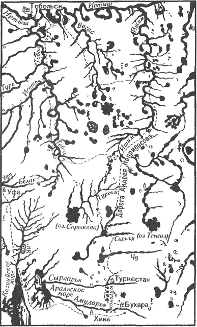 Вернувшись из Сибири в Челябинск, Паллас в марте 1773 г. прошел на северо-запад «через весьма суженный Урал, состоящий из …мало возвышенных гор, поросших редким лесом», до р. Уфы (у 56° с.ш.). Следуя на запад через верхнюю Ирень (приток Сылвы), он вышел к р. Танып (примерно у 56° в.д.), и на западе перед ним открылась «прекрасная… многие версты в ширину простирающаяся равнина — междуречье Белой и Камы; напротив, [пройденная] страна гориста, поросла весьма густым хвойным… лесом». Итак, Паллас второй раз пересек Урал на одном из самых низких и широких участков. Камы он достиг у 54° в.д. Весной Паллас проехал через центральную часть Сарапульской возвышенности («через нарочитые возвышения»), переправился через Каму, двинулся на юг, примерно вдоль 53-го меридиана, по Бугульминско-Белебеевской возвышенности и пересек Общий Сырт. Паллас дал ему первую правильную характеристику: «…отделяется от главной полосы хребта, простирается в юго-западную сторону и несправедливо называется продолжением настоящего Урала… По отделению от себя многих побочных отрогов… между Яиком и Самарой [он постепенно] сужается и, протягиваясь узкой полосой холмов в степь, теряется между Яиком и Волгой». За 52° с.ш. «степь вдруг переменилась в сухую, голую и исполненную… солончаками» — до самого Яика. По его правому берегу Паллас добрался до 50° с.ш. и проехал на юго-запад к низовью Кушума — вершину этого правого рукава Яика он исследовал близ 51° с.ш. Он установил, что р. Кушум питается не только снеговой водой и «потаенными ключами», но и весенними полыми водами Яика «и тогда не только изобилует водой, но еще она весьма годна для питья. Напротив… летом высыхает он участками, а в оставшихся лужах содержит вонючую и гнилую воду». В низовье Кушум проходит через ряд мелких озер и «напоследок оканчивается пространным… озером [у 49° с.ш.], которое никакого сообщения не имеет с Камыш-Самарским озером [и] отделено от него высокой сухой степью». Это было первое и точное описание Кушума. «Вся степь вдоль по Кушуму суха, безлюдна, солена и для… хлебопашества и скотоводства постоянных жителей неспособна». Паллас обследовал низовья Большого и Малого Узеня (у 49° с.ш.). «В этой стране почти в середине между обеими реками лежит наибольшее из… Узенских [Камыш-Самарских] соленых озер… [без] видимого истока», а западнее его другое; поблизости «по степи рассеяны сухие солончаки». Паллас обнаружил здесь «следы древних водоводов» — арыков. Дальнейший путь шел на юго-запад через Рын-пески, которые начинаются «почти под 49° с.ш. между Большим Узенем и… Эльтонским соляным озером… и, не прерываясь, простираются по середине между Волгой и Уралом до северного берега Каспийского моря. Рын-пески состоят из больших, зеленью покрытых песчаных глыб, возвышающихся над сухой… глинистой степью. [На юге]… песчаные поля простираются, не прерываясь, и имеют прекраснейшие луга, расположенные между [барханами]… и изобилующие тростником и кустарником»[12]. Он обратил внимание на обилие ключей в этой местности. Через соляную «гору» Чапчачи (14 м над уровнем океана) в середине июня он добрался до Ахтубы. От нижней Волги Паллас прошел на запад через Сарпинскую низменность и осмотрел «реку Сарпу»: «Как и… другие степные речки, [ее] составляют многие глубокие и великие, покрытые тростником… озера, между которыми находятся н