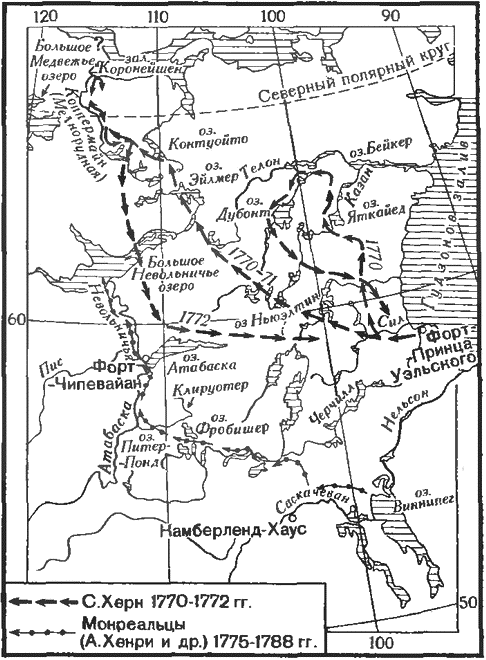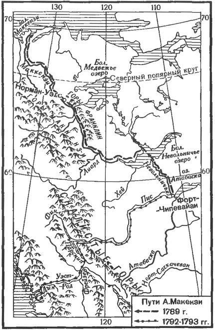Тихоокеанское побережье Северной Америки между 45 и 60° с.ш. в 80-х гг. XVIII в. привлекало к себе внимание и купцов и географов. Одних притягивали пушные богатства края. Другим не давали покоя две проблемы — проход в Атлантический океан и пролив в мифическое североамериканское средиземное море. Среди моряков, посещавших этот район, ходили легенды о внутреннем море со множеством островов, занимающем значительную часть северных областей материка. (В 1790 г. появилась даже книга одного из капитанов, доказывавшего реальность существования такого моря и пролива, который соединяет его с Тихим океаном.) Торговые и научные интересы в ряде случаев совпадали. Так, весной 1787 г. Джордж Диксон, капитан британского судна «Королева Шарлотта», обследовал широкий пролив, с тех пор носящий его имя (Диксон-Энтранс), между о. Принца Уэльского и о-вами Королевы Шарлотты. Уильям Дуглас, командовавший кораблем «Ифигения», в 1788 г. первый прошел по всей длине морской канал, отделяющий от материка о-ва Королевы Шарлотты, — пролив Хекате. Летом следующего года он провел изучение группы прибрежных небольших островов у 53–54° с.ш. и в поисках мифического пролива проследил до вершины узкий каньон, тем не менее названный проходом Дуглас. Его открытия положил на карту Чарлз Дункан, капитан «Принсесс Ройал», в погоне за тем же миражом открывший в том же 1789 г. остров, который получил имя его судна, отделенный от материка очень узким проливом. Испанцы, внимательно следившие за незаконными — с их точки зрения — действиями англичан у Тихоокеанского побережья Северной Америки, направили туда военный корабль. Они посадили У. Дугласа под арест, а груз (или его часть) конфисковали. Английские купцы обратились в парламент, прося защиты, и в «горячую точку» в 1791 г. была направлена флотилия Д. Ванкувера (см. ниже).Плавания Роберта Грея