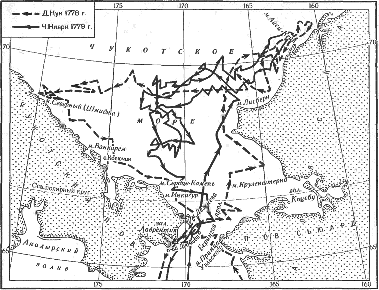 Маршруты Д. Кука и Ч. Кларка в Чукотском море