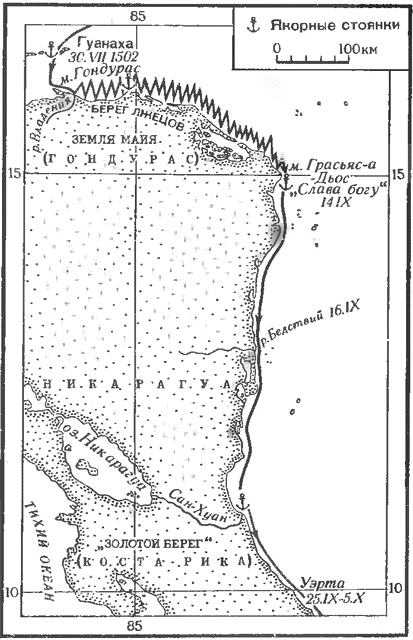 Путь X. Колумба у берегов Южной Америки (по С. Морисону).