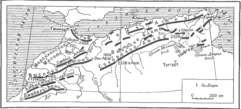 В середине XVI в. Лоуренсу Маркиш поставил в бухте Делагоа (у 26° ю. ш.) пост, чтобы расширить португальскую торговлю с народами Южной Африки языковой семьи банту, и на этом месте позднее (в XVII в.) возник названный в его честь город, столица Мозамбика[237]. Внутрь Африки — к югу от экватора — со стороны Индийского океана португальцы проникли по Замбези, но в XVI в. еще не очень далеко. Целью их была Мономотапа — государство, расположенное к юго-западу от нижнего Замбези и славившееся крупными месторождениями золота. Португальское правительство начиная с 1571 г. несколько раз посылало завоевательные отряды в Мономотапу, и, хотя все они закончились неудачно, они расширили сведения португальцев о странах по обе стороны нижнего Замбези. Там, у 16° ю. ш., был основан пост Тете, ставший центром торговли с Мономотапой, а в XVII —XIX вв. — отправной базой для ряда разведывательных экспедиций в глубь Африки. К концу XVI в. португальцы имели в самой Мономотапе три небольших торговых поста — на южных притоках Замбези. От Тете португальцы поднимались по Замбези, за пороги Кебрабаса — к поселку Шикон (32° 30' в. д.) и искали оттуда кратчайший путь, связывающий среднюю Замбези с Индийским океаном. С этой целью Гашпар Бокарру в марте 1616 г. выступил от Шикона на северо-восток и на этом пути открыл озеро Марари (Ньяса, 30 800 км2) — первое из африканских Великих озер, которое, несомненно, видел европеец. Бокарру не исследовал, как далеко тянется оно к северу. Он обогнул Ньясу с юга и обнаружил, что из озера вытекает полноводная р. Шире, нижний приток Замбези; устье ее уже было известно португальцам. За Шире он повернул к северо-востоку, следуя по долине Лудженды, которая довела его до полноводной Рувумы, а по последней в мае он прошел до океана. Бокарру закончил свое почти двухмесячное путешествие в порту Килва (близ 9° ю. ш.), к северу от устья Рувумы.Атайди: первое пересечение Африки