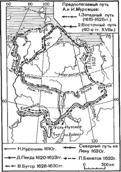В 1615 г. из Томска в Монголию был отправлен атаман Василий Тюменец. На лошадях он поднялся по долине Томи, пересек Горную Шорию, перевалил Абаканский хребет, Западный Саян и проник в Туву (Табынскую землю). Он описал эту страну в немногих словах: «А Табынская земля то же Киргизские земли, только живут о себе, а дань дают в Киргизскую землю и к Алтыну-царю [монгольскому хану]: кто с ним ни придет, тому и ясык [ясак] дают. А живут они по лесам, меж гор в ослонах [юртах, укрепленных жердями], переходят, где кому место полюбится, а шубы носят оленьи и козьи, а кормятся зверем, бьют лоси и олени, и козы; мясо едят, а в кожах делают платье. А угодий у них никаких нет, и хлеб не родится, и коров и овец нет, только одни лошади да олени… А леса и горы в Киргизской земле каменные велики». Затем Тюменец пересек верховья Кемчика (система Енисея), перевалил несколько хребтов и по широкой долине, возможно Карты, прошел к горному (1425 м) соленому озеру Урэг-Нур (50°10' с. ш. и 91° в. д.). Повернув на восток и спустившись в степь, он вышел к ставке монгольского хана у озера Усап (Убсу-Нур) и первый описал это бессточное озеро. Дипломатические переговоры закончились успешно — хан согласился перейти в русское подданство. Тюменец с послами хана проехал на родину тем же путем, а в конце ноября 1615 г. прибыл в Тобольск. В запись его показаний включено краткое описание Северо-Западной Монголии — первое, составленное русским. Маршрутом Тюменца воспользовался первый русский посол в Китае, сибирский казак Иван Петлин, владевший несколькими языками. 9 мая 1618 г. во главе миссии из 11 человек он отправился из Томска и вместе с послами монгольского «Алтына-царя» через тринедели прибыл в озеру Убсу-Нур. Отсюда путешественники двинулись на юго-восток, перевалили Хан-Хухэй — северо-западный отрог Хангайского хребта, а затем и сам Хангай (в верховьях р. Дзабхан) и вдоль его южных склонов прошли около 800 км. У излучины р. Керулен (у 109° в. д.) они повернули на юго-восток и пересекли пустынные пространства Гоби. Не доходя Калгана, Петлин увидел Великую Китайскую стену и описал ее. 1 сентября он прибыл в Пекин. Обратно посольство двинулось через четыре дня и 16 мая 1619 г. вернулось в Томск. Петлин описал свое путешествие, столицу Китая и три других китайских города в «Росписи Китайскому государству… и иным государствам жилым и кочевым, и улусам, и великой Оби, и рекам, и дорогам».Первые европейские исследователи Гималаев и Тибета