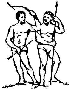 По словам пленниц, на всех трех новооткрытых островах жили карибы. Они совершали набеги на острова мирных, почти безоружных араваков, делая далекие переходы на больших челнах-однодеревках. Оружием их были луки и стрелы с наконечниками из обломков черепаховых панцирей или «из зазубренных рыбьих костей, похожих на острые пилы». «Совершая набеги…— пишет Д. Чанка, — карибы увозят с собой женщин, сколько могут захватить, чтобы сожительствовать с ними… или держать их в услужении. Женщин… так много, что в 50 домах мы видели одних только индианок[11]… Женщины эти говорят, что карибы… детей, рождающихся у этих женщин… пожирают, а воспитывают только тех, кто прижит от жен-карибок. Пленных мужчин они увозят в свои селения и съедают их там, и точно так же они Поступают с убитыми». Слово «кариб», искаженное испанцами в «каннибал», вскоре стало равнозначащим слову «людоед». Обвинение карибов в людоедстве, как видно из «дневника» Колумба и письма Чанки, основаны были на словах жителей Эспаньолы и пленниц с Малых Антильских о-вов и как будто бы подтверждались находками в карибских жилищах человеческих черепов и костей. Однако сам Д. Чанка вскоре усомнился в том, что это доказательство людоедства — черепа были в жилищах мирных араваков: «Мы нашли на Эспаньоле в корзинке, сплетенной очень красиво и тщательно, хорошо сохранившуюся человеческую голову. Мы решили, что это голова отца, матери или другой особы, чью память здесь очень чтут. Впоследствии я слышал, что таких голов находили великое множество, и потому считаю, что мы правильно судим об этом». Что касается показаний араваков, страдавших от набегов карибов, то даже некоторые буржуазные историки и этнографы XIX в. не считали такие свидетельства заслуживающими безусловного доверия. Они подчеркивали, что колонизаторы сознательно преувеличивали в своих сообщениях «кровожадность» карибов, чтобы оправдать массовое обращение в рабство или истребление жителей Малых Антильских о-вов. Советские этнографы допускают, что у карибов, как и у других народов, в период перехода от матриархата к патриархату, существовало людоедство как военный обычай: они верили, что отвага, сила, быстрота и прочие воинские доблести врага перейдут к тому, кто съест его сердце или мышцы рук и ног. От Гваделупы Колумб двинулся на северо-запад, открывая один остров за другим: 11 ноября — Монтсеррат, Антигуа (испанцы там не высаживались) и Невис, где суда стали на якорь; 12 ноября — Сант-Киттс, Сант-Эстатиус и Саба, а 13 ноября — Санта-Крус (на западе), где видны были возделанные поля. В надежде добыть здесь проводника к другим островам и Эспаньоле Колумб выслал на следующий день к прибрежному селению бот с вооруженными людьми, которые захватили несколько женщин и мальчиков (пленников карибов), но на обратном пути бот столкнулся с карибским челном. Карибы оцепенели от удивления, увидев в море большие корабли, а в это время бот отрезал их от берега. «Видя, что бежать им не удастся, карибы с большой отвагой натянули свои луки, причем женщины не отставали от мужчин… их было всего шестеро — четверо мужчин и две женщины — против двадцати пяти наших. Они ранили двух моряков… И они поразили бы стрелами большую часть наших людей, не подойди наша лодка вплотную к каноэ и не опрокинь его… Они пустились вплавь и вброд — в этом месте было мелко —