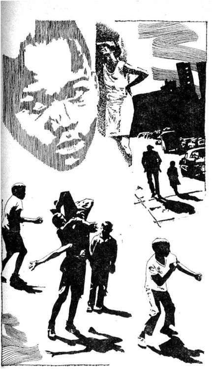 На оживленной, залитой отсветами вечерних реклам площади тучная африканка с неимоверно затейливой, многоэтажной прической и в не менее затейливо разукрашенном платье, плотно облегавшем ее фигуру, усердно запирала газетный киоск на два вызывающе новеньких висячих замка с таким благоговейным видом, будто это была не заурядная лавчонка, а златохранилище века. Покончив с замками, она подергала их, убеждаясь в надежности, по-хозяйски еще и еще раз осмотрела киоск, снова подергала замки и лишь после этого решилась уйти. Поравнявшись со скамьей, где сидела миловидная девушка с репортерской сумкой на "молнии", демонстративно отвернулась, поскольку приметила еще раньше, что девушка давно здесь сидит, с явным ожиданием поглядывая на нее. — Добрый вечер, мемсаб, — вежливо произнесла юная незнакомка, поднимаясь и направляясь к ней. — Ах, оставьте, — ворчливо отозвалась толстуха, не оборачиваясь. — Я тороплюсь. Догадываюсь, кто вы и что вам от меня нужно. Язык опух от разговоров, не стало покоя на работе. Я не даю интервью, не желаю. Все. — Прошу прощения, но я как раз по поводу вашей работы. Всего несколько вопросов. Пожалуйста. Я вас не задержу. Это очень важно. — Ах, по поводу работы, — женщина остановилась, повернулась с неуклюжим поклоном, — сожалею, но вы опоздали, киоск закрыт. — Да нет же, мне нужны именно вы. Как бы вам объяснить… — Говорите прямо, что вам от меня нужно? — Прежде всего хотела бы спросить, когда поступают утренние газеты. Скорчив недовольную мину, толстуха оглядела несколько смущенную своей настойчивостью девчонку с ног до головы, сказала: — Так вы сыщик, а не репортер? То-то я смотрю, вы околачиваетесь на площади возле моего предприятия. Ваш блокнот собьет с толку кого угодно, только не меня. — Да нет… видите ли… откровенно говоря, я действительно репортер, — сказала девушка. — Стажер. Меня зовут Джой Маллигэн, отдел хроники и объявлений "Абреже". — Ах, оставьте, я же сказала, меня не проведешь. Держу пари, вы тоже насчет убийства неподалеку от моего киоска, верно? Ужасно. Автомобильное происшествие такая редкость, не правда ли? — Да, но я хотела бы… — По-моему, у вас никакой системы. — Простите? — В полиции нет согласованности, я говорю. Люди от вас приходят разные, а спрашивают одно и то же, просто на части разорвали. Одно и то же, одно и то же, без конца. — Толстуха тараторила взахлеб. — Нет, у вас определенно никакой системы, поэтому, поверьте, столько нераскрытых преступлений. Уж я-то знаю, все газеты проходят через мое предприятие. — Я не из полиции, меня заинтересовало, когда и как развозят утренние пакеты. — Я понимаю, — закивала толстуха, — зачем вам бегать по типографиям, когда можно спросить у владелицы предприятия по продаже газет. Зачем бегать по типографиям? — Вот я, собственно, и хотела бы… — Ваши люди подходили ко мне десять раз, не меньше, — говорила владелица киоска, не давая собеседнице закончить фразу, — а что я могу сообщить, если в такое раннее время еще сплю? К тому же в другом конце города. Я живу у вокзала. Нет, новая полиция еще не научилась работать, уверяю вас. У вас нет четкой системы, действуете вразброд. Особенно такие молоденькие. — Я не из полиции, — напомнила девушка, ощутив легкое головокружение. — Ах да, вы же белая. Я понимаю, отчего вы так представились. Ваша настоящая служба… — Повторяю, мемсаб, пере