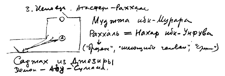 Рабочий дневник, 16 февраля 1987 г. Схема коридора квартиры во время появления Муджжи ибн-Мурары (ОЗ). Рисовал БНС