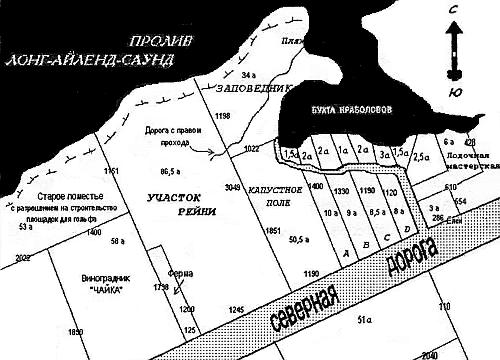 Я внимательно рассмотрел ее.– Как видите, у него на уме не просто виноградник.– Это просто колоссальный проект, – проговорил я. – Неужели Марсено уже скупил все участки?– Все, за исключением полоски земли, обозначенной буквой Л. Владелец этого участка пытается выторговать несколько большую сумму денег, которую он, конечно, получит. Остальная земля или уже продана, или, как я говорила, взята в долгосрочную аренду.Я задумался. Трудно было представить себе более наглядный пример того, как в современных условиях воплощается древний принцип «Разделяй и властвуй». Марсено тайно собирал из кусочков огромное земельное владение. Чтобы не привлекать внимания, он действовал через разные риелторские агентства и приобретал участки в такой очередности, чтобы между покупкой двух смежных участков пролег более или менее значительный временной отрезок. Вместе с тем действия его были максимально быстрыми, чтобы цены на землю не успели взлететь до небес. Даже упомянутая Мартой долгосрочная аренда, к которой прибегал Марсено, была одной из распространенных форм приобретения земельных наделов под застройку. Кстати, если кто не знает, участок земли под Рокфеллеровским центром тоже в свое время образовался после того, как двести двадцать девять полуразрушенных, ветхих кирпичных домишек были куплены одной компанией. В начале своей карьеры я сам участвовал в подобной «сборке» весьма большого земельного надела в районе Восточных Шестидесятых улиц; помнится, необходимо было выкупить у владельцев девять разных участков земли, самый маленький из которых имел каких-нибудь шестнадцать футов ширины. Моя фирма поручила мне эту работу в значительной степени из-за того, что тогда я выглядел очень молодо и вполне безобидно. Я со своей стороны был в восторге от этого задания. Благодаря моим усилиям донять продавцов продали свои участки девяти разным юридическим лицам, одно из которых носило название, смутно напоминающее корейское, в названии другого фигурировала еврейская фамилия, и так далее, и так далее. Я уверен, что даже если бы продавцы сравнили свои контракты, они бы, скорее всего, ничего не заподозрили. Излишне упоминать, что в действительности каждое юридическое лицо представляло собой лишь пакет уставных документов и находилось в полной и безраздельной собственности нашего клиента – крупного голландского банка.– Да-а, ничего себе участочек… Сколько же это всего получается?… Акров двести с лишним?– Да. Конечно, на Норт-Форке есть большие участки, и немало, но лишь немногие из них выходят на побережье, лишь немногие подходят для виноградарства, граничат с заповедником, имеют выход к защищенной бухте с удобным песчаным берегом и продаются.– И во что это может обойтись? Я имею в виду – в денежном выражении?– Самым дорогим участком было старое поместье, так как оно выходит к морю, и на его территории разрешено строительство площадок для гольфа. Оно одно обошлось Марсено порядка шести миллионов. Виноградник «Чайкины какашки» был продан за три миллиона благодаря высокому качеству высаженной там лозы.Я поймал себя на том, что вспоминаю, в какую ярость пришел Г. Д., когда говорил о том, за сколько Джей продал свою землю. Цифра, которую он назвал, показалась мне тогда непомерно высокой, но в свете того, что я только что узнал, в ней был свой смысл. Должно