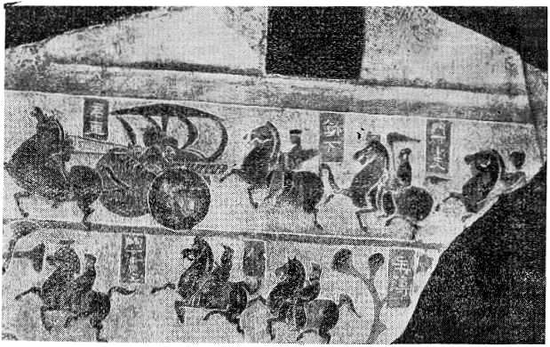 В отдалённые времена, когда китайцы жили ещё родами в излучине реки. Хуанхэ, им приходилось воевать со многими окружавшими их племенами. Китайское государство постепенно расширяло свою территорию. Оно доходило иногда на юге до Индокитая, на востоке — до Кореи, на севере захватывало Маньчжурию. Племена, жившие по соседству с китайцами, стояли на более низкой ступени развития. Это были охотники и скотоводы, ещё не перешедшие к земледелию. Иногда китайцы I воевали с ними, а иногда вели торговлю и то мирным, то военным путём подчиняли себе соседние племена или сливались с ними. Однако не всегда китайцы выходили победителями в борьбе на своих границах. Самую жестокую борьбу им пришлось вынести, когда в IX в. до н. э. на северных и западных границах Китая появилось сильное кочевое племя — гунны (по-китайски сюнну). Кочевники совершали неожиданные набеги на китайские селения, убивали мужчин, уводили в плен женщин, опустошали земли и грабили, разрушали налаженное долголетним трудом хозяйство земледельца. В борьбе с гуннами китайцам пришлось перестраивать свою армию. В войнах между китайскими княжествами удобно было применять войско, состоящее из лёгких и тяжёлых колесниц, с большим обозом и техническими средствами для осады укреплённых городов, но это громоздкое военное хозяйство не годилось для сражений с налётами быстрой и подвижной конницы кочевников. В боях с ними китайцы поняли преимущество конной армии и стали создавать свои отряды конницы. Но всё же конница гуннов превосходила Китайскую.