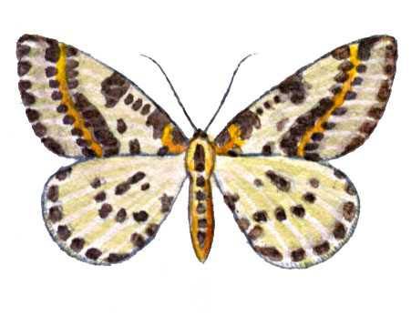 Бабочки. Пяденица крыжовниковая (Abraxas grossulariata) — Европа, Сибирь, Вост. Азия. Вредитель крыжовника. Бабочка.
