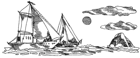 Пасат, що підігнав «Еренджі» вже під захисток острова Малейти, тепер стихав, і судно загойдалось на крутій хвилі, грюкаючи блоками шкотів та гучно лопотячи вітрилами. Джеррі тільки глузливо позирав на грот, що метлявся над ним. Вія знав уже, що ті погрози пусті, але остерігався блоків грот-шкота і обходив погон, а не переступав його.